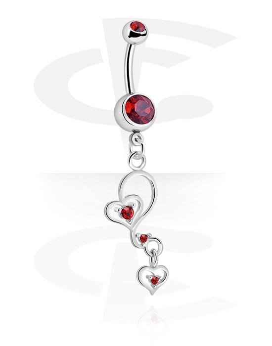 Belly button ring (surgical steel, silver, shiny finish) with heart charm and crystal stones