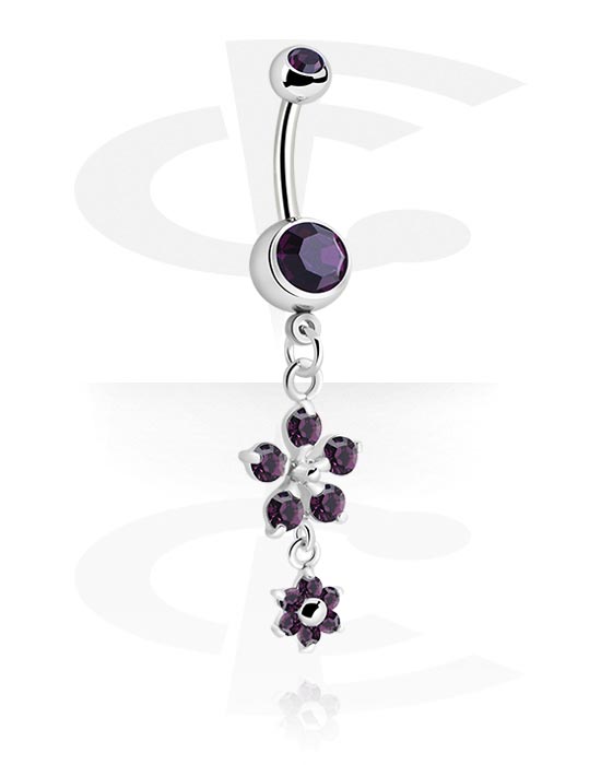 Belly button ring (surgical steel, silver, shiny finish) with flower charm and crystal stones