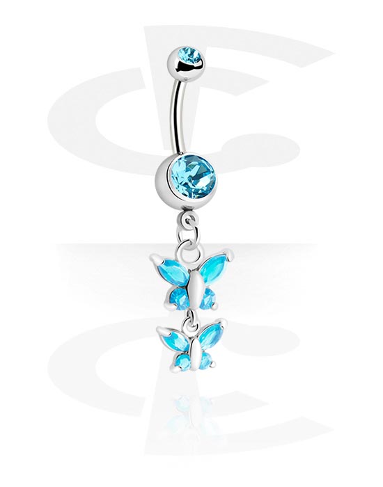 Belly button ring (surgical steel, silver, shiny finish) with butterfly charm and crystal stones