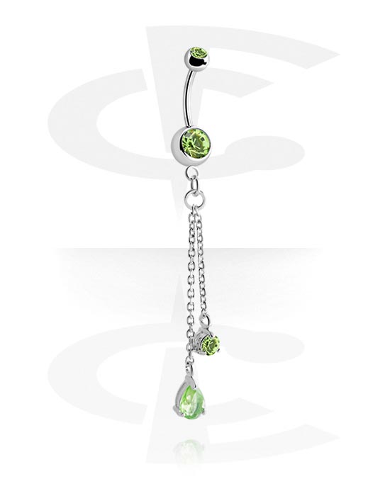 Belly button ring (surgical steel, silver, shiny finish) with charm and crystal stones