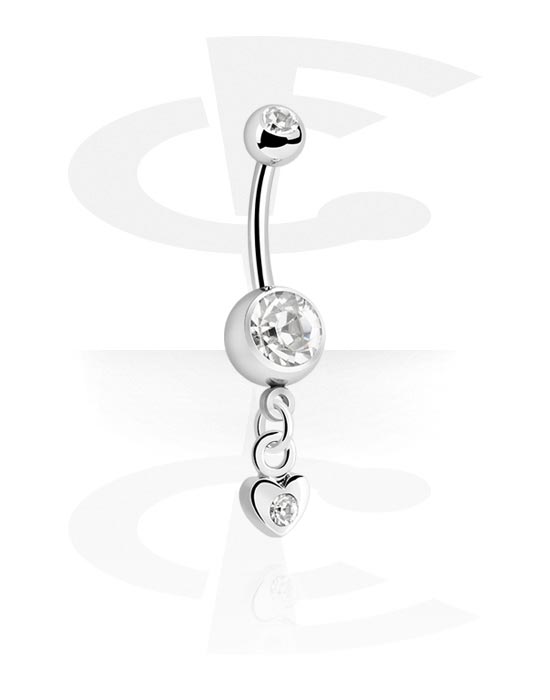 Belly button ring (surgical steel, silver, shiny finish) with heart charm and crystal stones