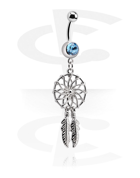 Belly button ring (surgical steel, silver, shiny finish) with dreamcatcher charm and crystal stone