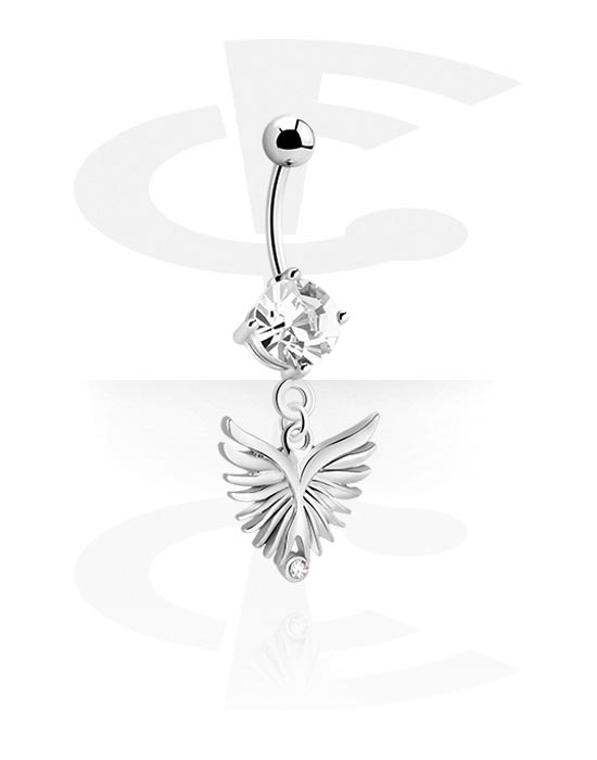 Belly button ring (surgical steel, silver, shiny finish) with wing charm and crystal stones