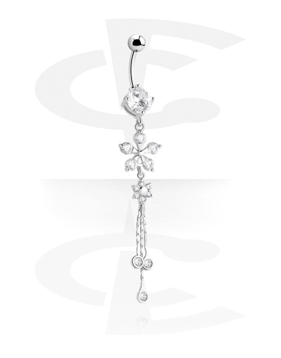 Belly button ring (surgical steel, silver, shiny finish) with charm and crystal stones