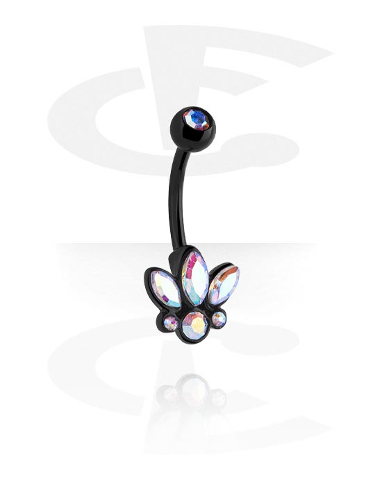 In stock with gauge of 1.6 mm. The available length is 10 mm. The stonecolor is a beautiful Aurora Borealis. A totally trendy product that matches your style.