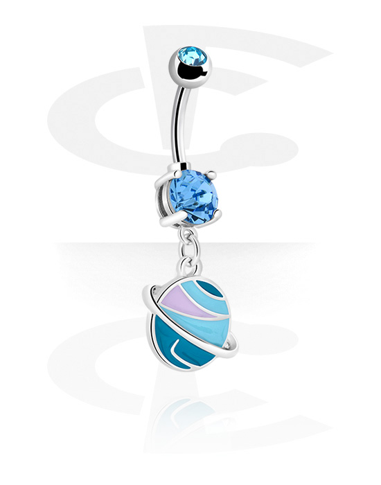 Belly button ring (surgical steel, silver, shiny finish) with planet design and crystal stones