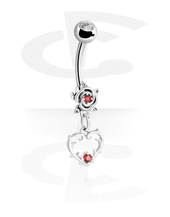 Belly button ring (surgical steel, silver, shiny finish) with rose design and heart charm