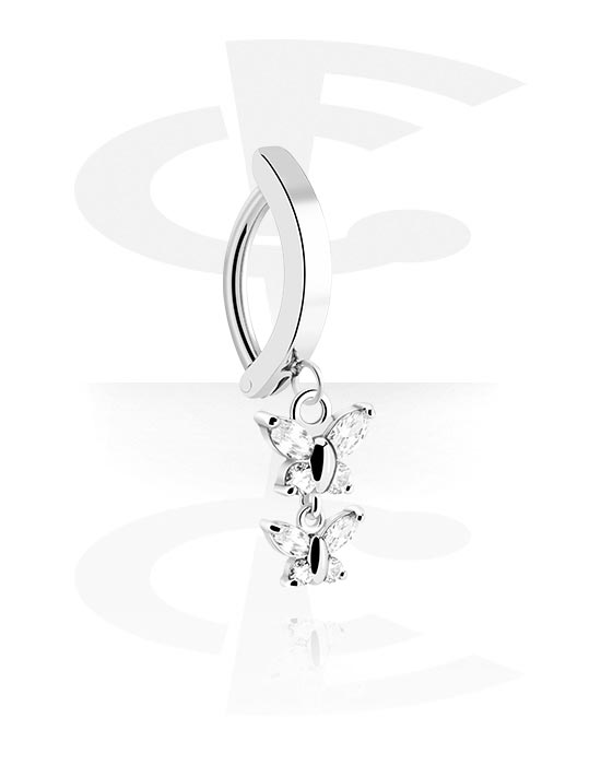 Belly button clicker (surgical steel, silver, shiny finish) with butterfly charm and crystal stones