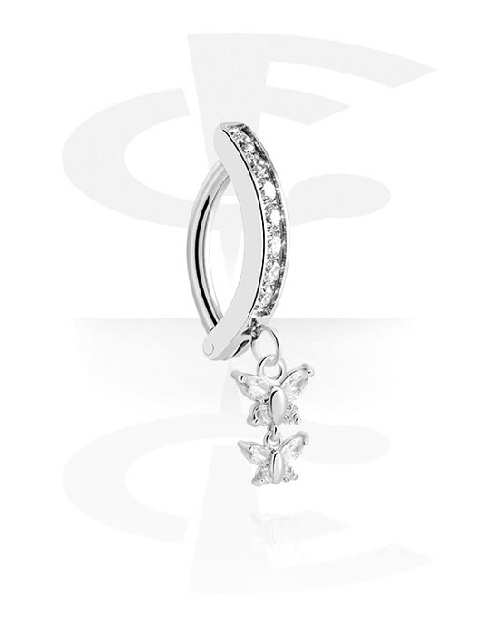 Belly button clicker (surgical steel, silver, shiny finish) with butterfly charm and crystal stones