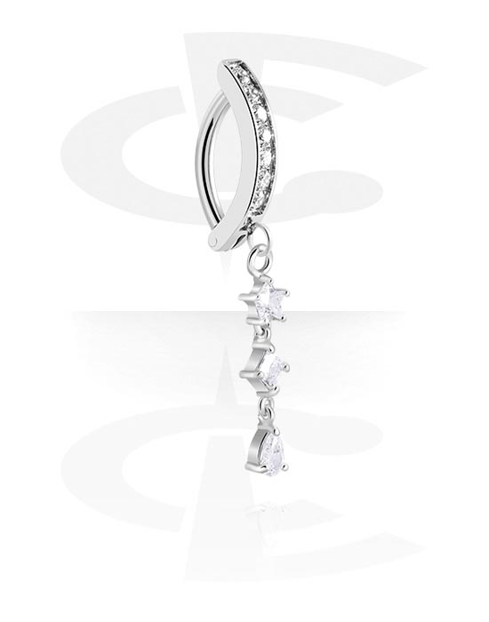 Belly button clicker (surgical steel, silver, shiny finish) with star charm and crystal stones