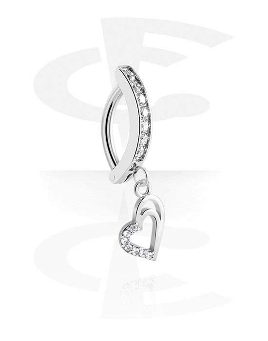 Belly button clicker (surgical steel, silver, shiny finish) with heart charm and crystal stones