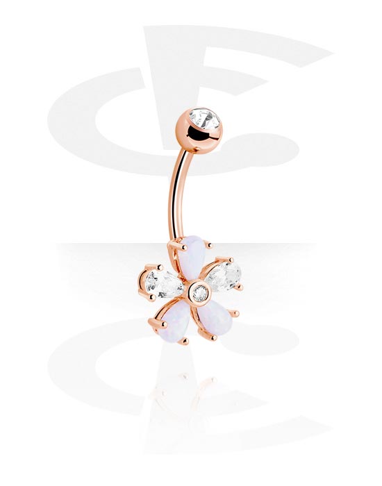 Belly button ring (surgical steel, rose gold, shiny finish) with crystal stones and Opal