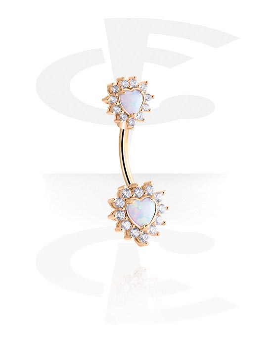 Belly button ring (surgical steel, rose gold, shiny finish) with crystal stones and Opal