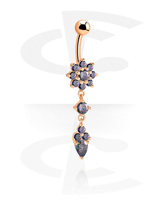 Belly button ring (surgical steel, rose gold, shiny finish) with crystal stones
