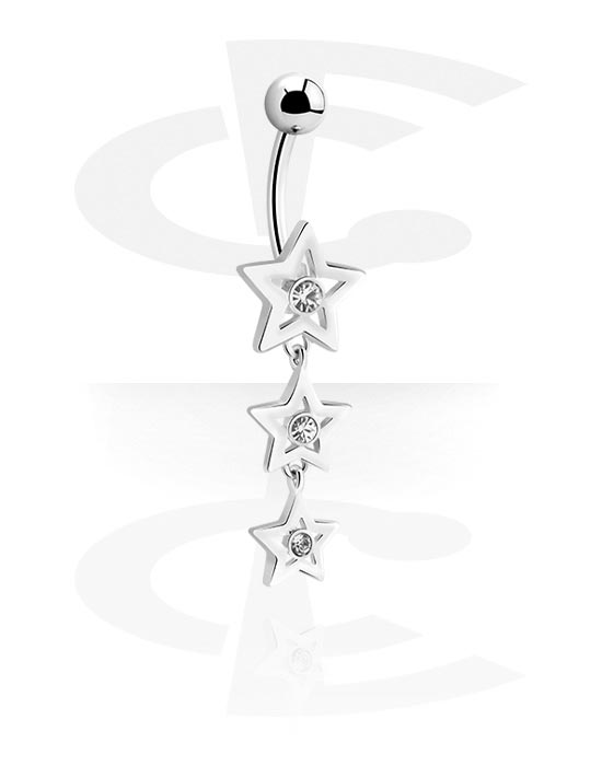 Curved barbell made of surgical steel featuring three jewelled star dangles. A romantic, sparkling eye-catcher for your belly button piercing, with jewelled stars in different colors for you to choose from.