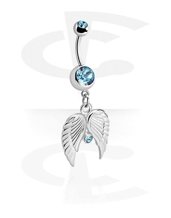 Belly button ring (surgical steel, silver, shiny finish) with wing charm and crystal stones