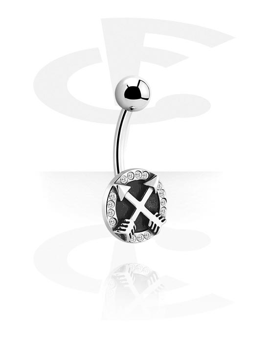 Belly button ring (surgical steel, silver, shiny finish) with arrow design and crystal stones