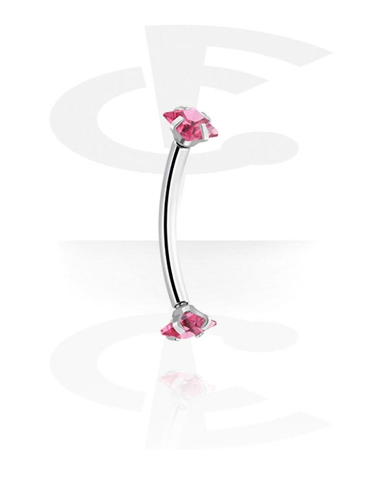 Internally Threaded Banana (surgical steel, silver, shiny finish) with crystal stones