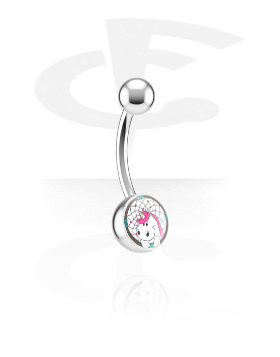Lovely curved barbell with a super cute crapwaer designs.
