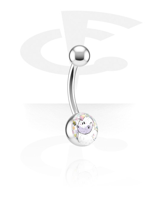 Belly button ring (surgical steel, silver, shiny finish) with Chubby Unicorn Design