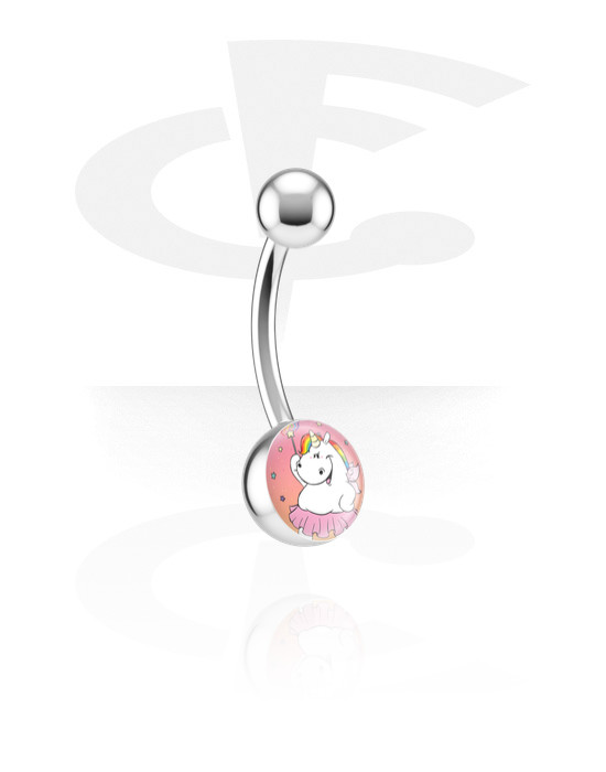 Belly button ring (surgical steel, silver, shiny finish) with Chubby Unicorn Design