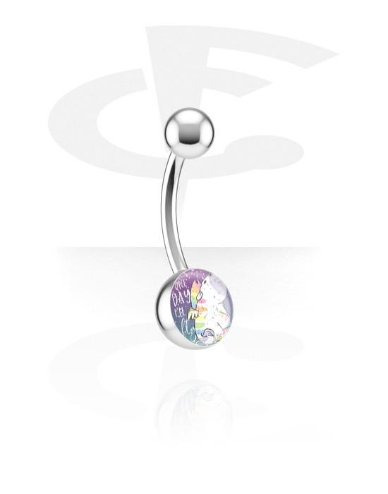Belly button ring (surgical steel, silver, shiny finish) with Chubby Unicorn Design