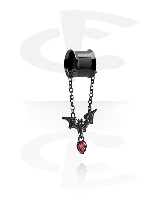 Double flared tunnel (surgical steel, black, shiny finish) with bat design and crystal stones