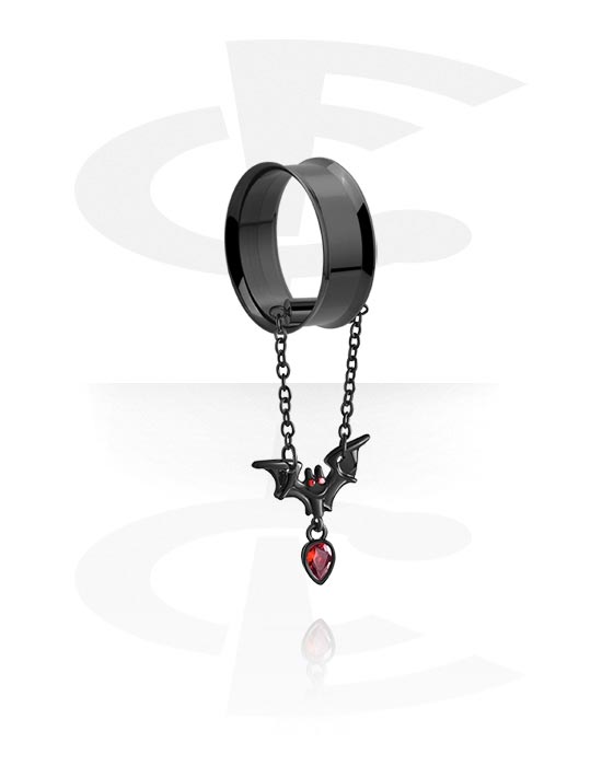 Double flared tunnel (surgical steel, black, shiny finish) with bat design and crystal stones