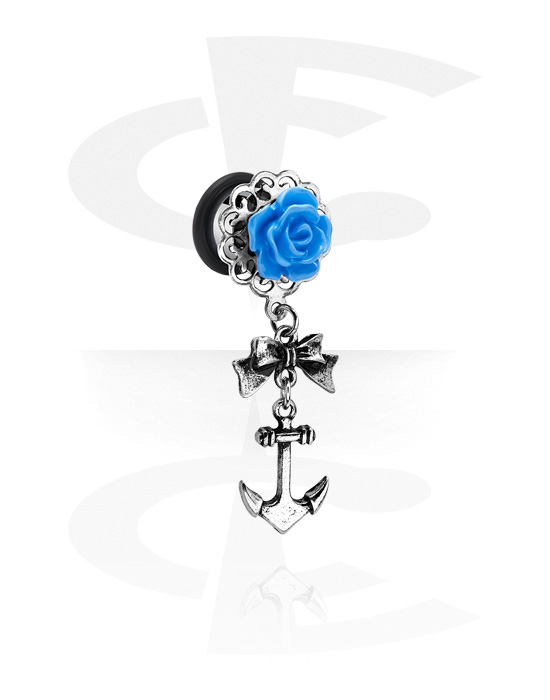 Single flared plug (surgical steel, silver, shiny finish) with rose design and O-ring