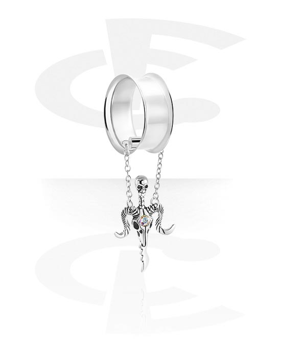 Double flared tunnel (surgical steel, silver, shiny finish) with skull design and Goat head design