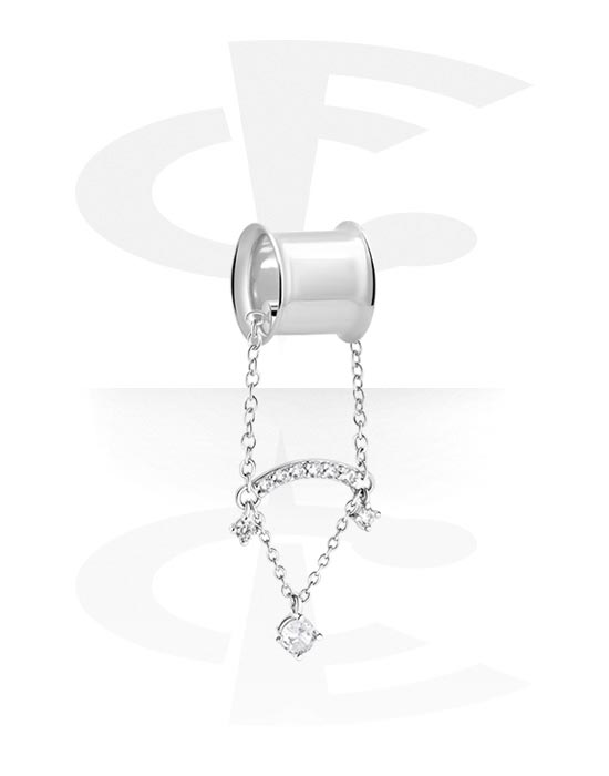 Double flared tunnel (surgical steel, silver, shiny finish) with crystal stones
