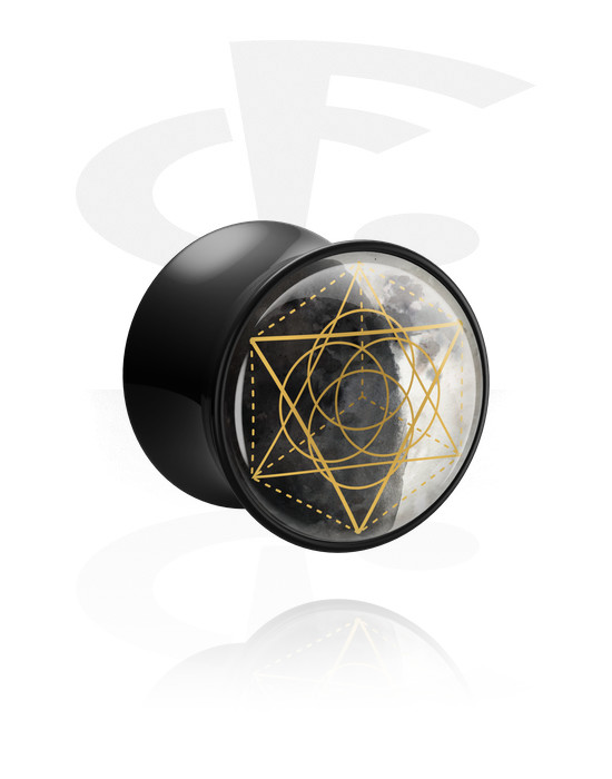 Check out this galactic crossover: Stylish geometrics in gold overlaid on rugged lunar landscapes. Simply stellar! Please note: As many of our customers stretch their ears to different sizes, all our plugs, tunnels and stretching tools are sold as singles. If you'd like a pair, please add two of the same item to the cart.