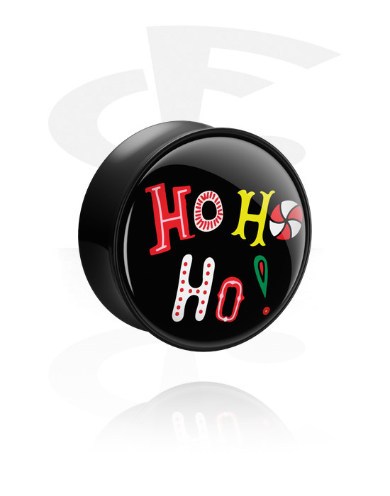 Double flared plug (acrylic, black) with Christmas design and "Ho ho ho" lettering