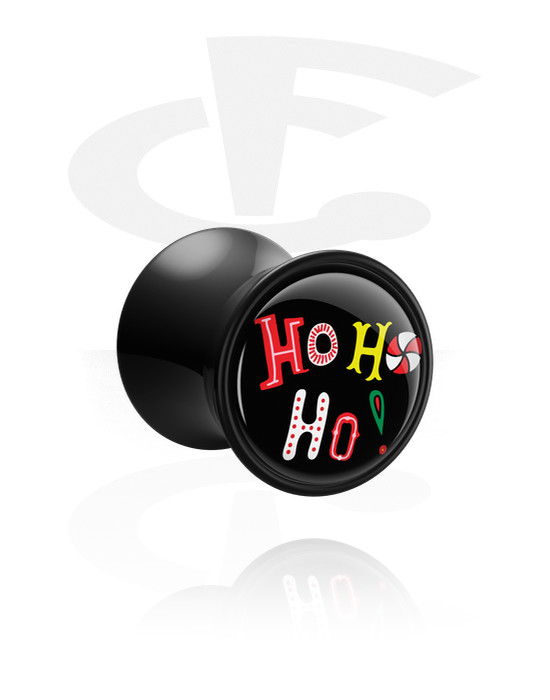 Double flared plug (acrylic, black) with Christmas design and "Ho ho ho" lettering