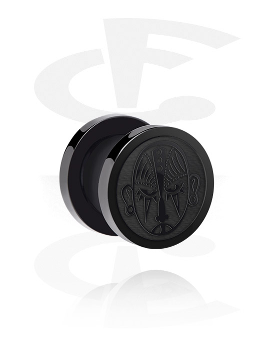 This super stylish acrylic flesh tunnel is emblazoned with a fantastically mystical tribal mask design. The design is lasered into the plastic, creating a unique 3D effect.