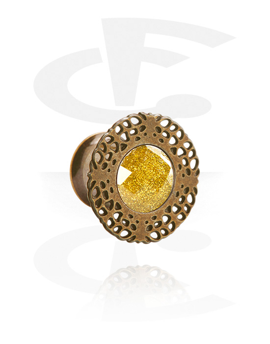 Double flared tunnel (surgical steel, antique gold) with cap in various colors and glitter