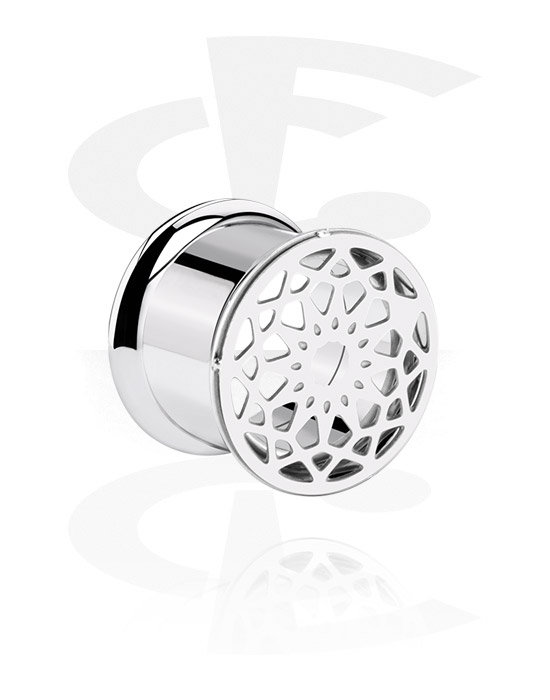 Double flared tunnel (surgical steel, silver, shiny finish) with mandala design