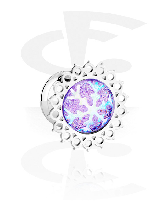Double flared tunnel (surgical steel, silver, shiny finish) with snowflake design in various colors
