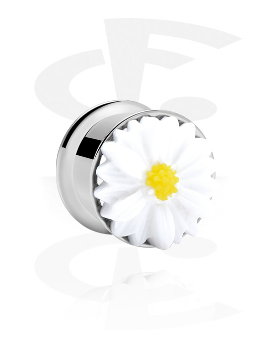 Double flared tunnel (surgical steel, silver, shiny finish) with daisy attachment