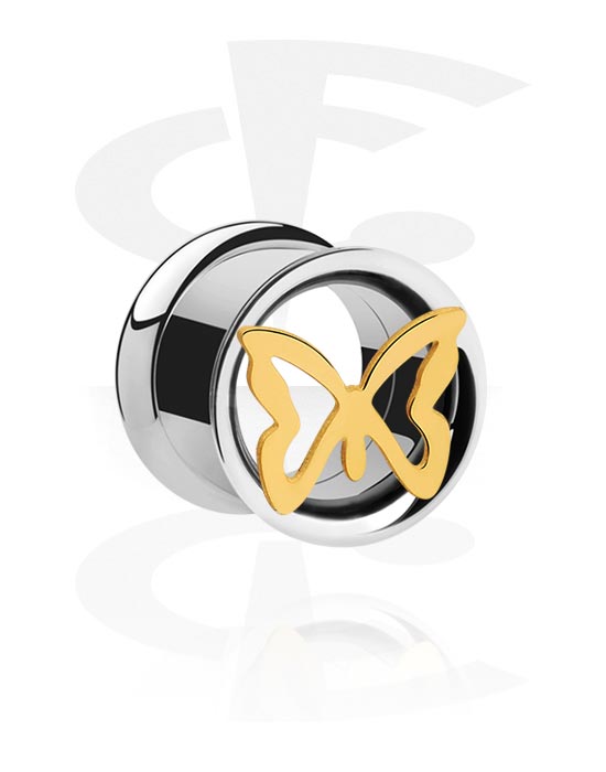 Double flared tunnel (surgical steel, silver, shiny finish) with butterfly design