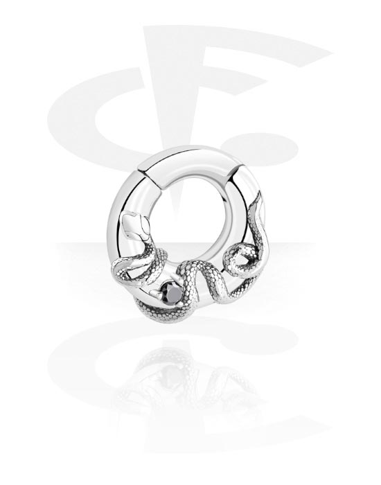 Ear weight (surgical steel, silver, shiny finish) with snake design and crystal stone