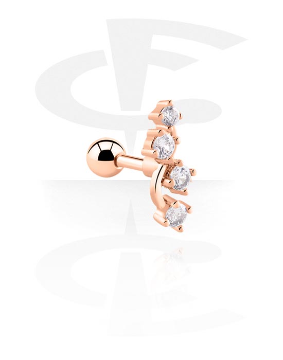 In stock with gauge of 1.2 mm. It's available in 6 mm length. The 4 mm ball is a perfect fit. The stonecolor is a beautiful Crystal. A totally chic product that matches your style.