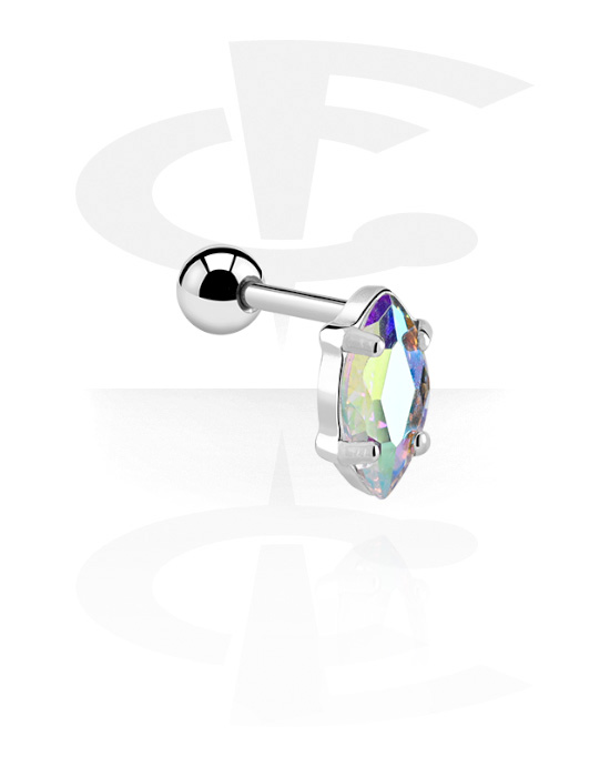 The available gauge is 1.2 mm. In stock with 6 mm length. It comes with a ball size of 4 mm. The stylish Aurora Borealis or Crystal stones add a lovely touch. A totally elegant product that matches your style.