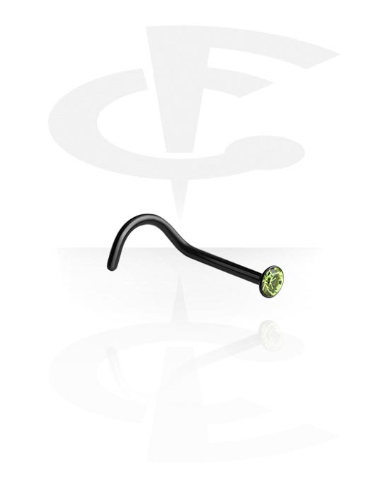 Curved nose stud (surgical steel, black, shiny finish) with crystal stone