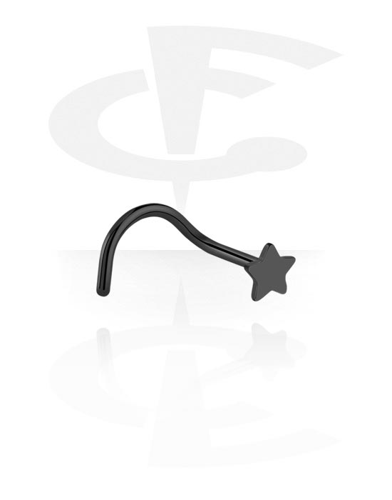 Curved nose stud (surgical steel, black, shiny finish) with star attachment
