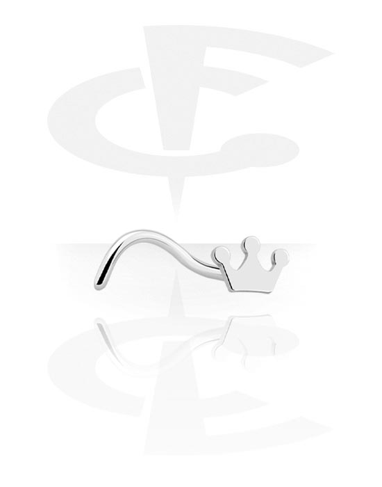 Curved nose stud (surgical steel, silver, shiny finish) with crown attachment