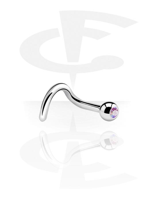 Curved nose stud (surgical steel, silver, shiny finish) with crystal stone