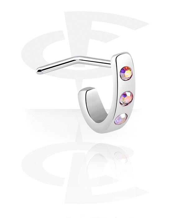 L-shaped nose stud (surgical steel, silver, shiny finish) with crystal stones