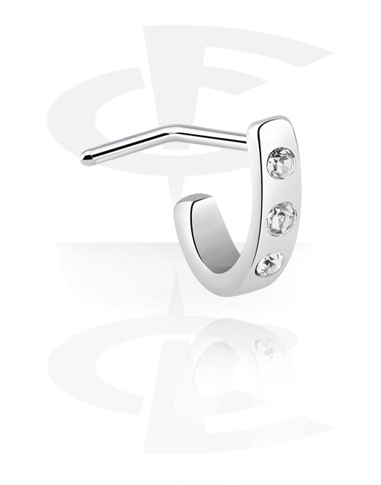 L-shaped nose stud (surgical steel, silver, shiny finish) with crystal stones