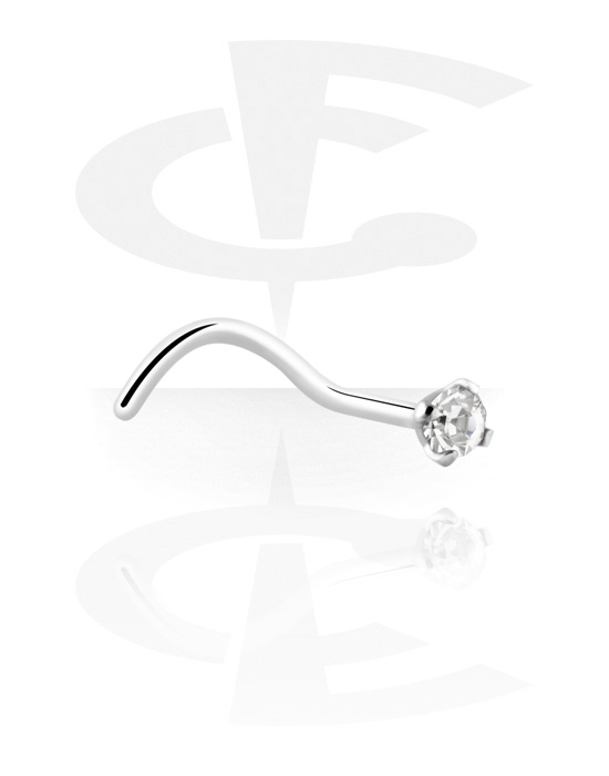 Curved nose stud (surgical steel, silver, shiny finish) with crystal stone